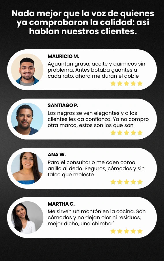 S. Están libres de talco, no dejan residuos y cumplen con normas de manipulación de alimentos.